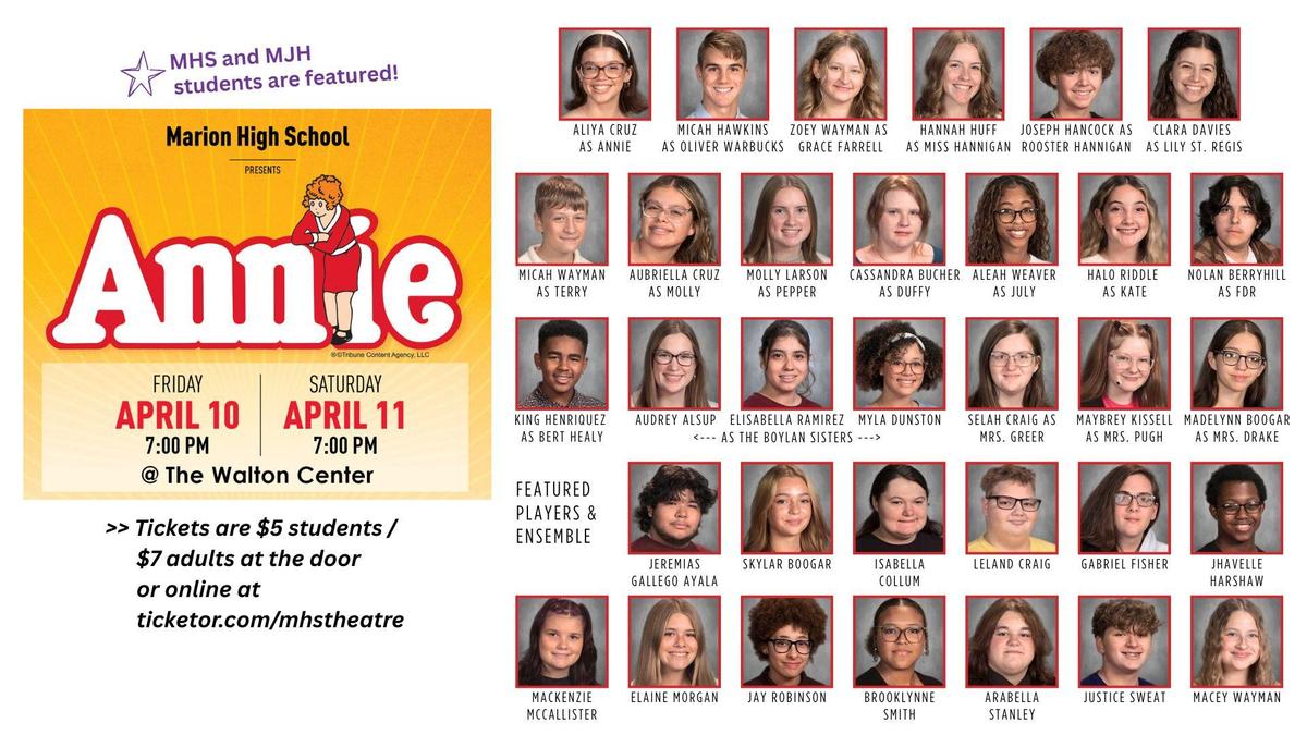 Marion High School is bringing the well-loved, family-friendly musical Annie to the main stage at the Walton Performing Arts Center this April. The cast features students from Marion High School as well as McCulloch Junior High.